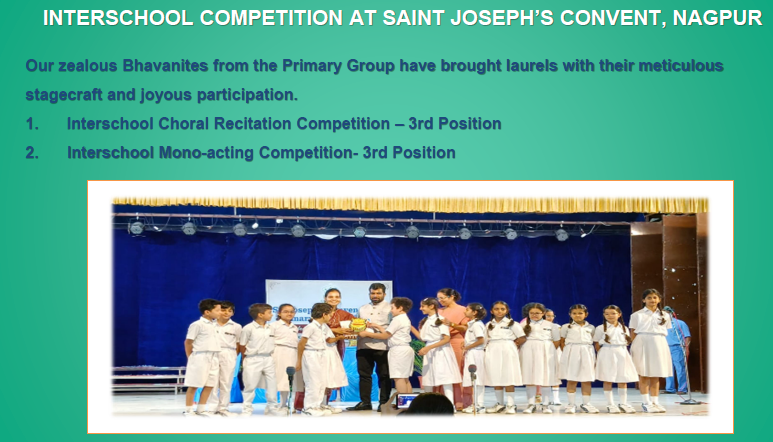 The students of Bhavan’s B. P. Vidya Mandir, Civil Lines, Nagpur showcased exceptional talent and artistic finesse at the Interschool Solo Classical Dance Competition organized by J.N. Tata Parsi Girls’ High School, Nagpur, on 25th July 2025. Competing against some of the best young dancers from various schools, BVM Civil Lines proudly bagged the Overall Trophy, marking a remarkable achievement in the field of classical dance.