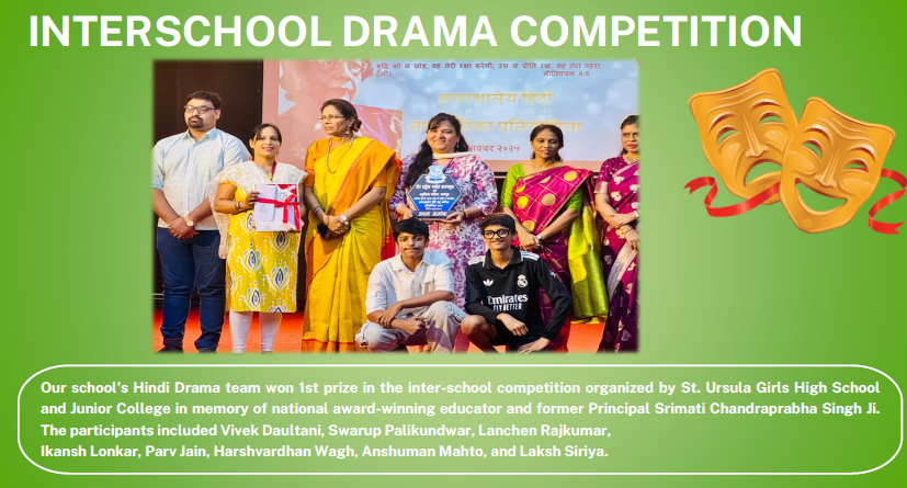 She was awarded a cash prize of ₹3000 for her outstanding performance.She prepared under the guidance of the school’s Art teachers, Shri Mahesh Dably and Shri Vivek Mahure. The Principal, Smt. Leena Varghese, congratulated Avira on her remarkable accomplishment and encouraged all students to continue striving for excellence in creative pursuits.