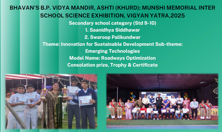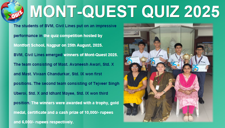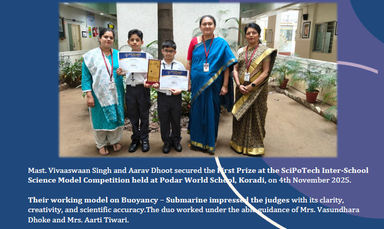 The participants were guided by Incharge Teacher Smt. Pallavi Upadeo, whose dedicated mentorship played a key role in their success. The school also acknowledges the constant encouragement and leadership of Principal Smt. Leena Varghese, whose support continues to inspire students to excel beyond the classroom.