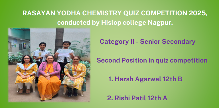 | NAME OF COMPETITION:Interschool Business Quiz [16.12.2019]Jain International School, Nagpur | WINNERS:Palash Mukherjee – XII & Amol Krishnani – XII 1st Prize. Cash prize of Rs.2000/-, Trophy & Certificate. |